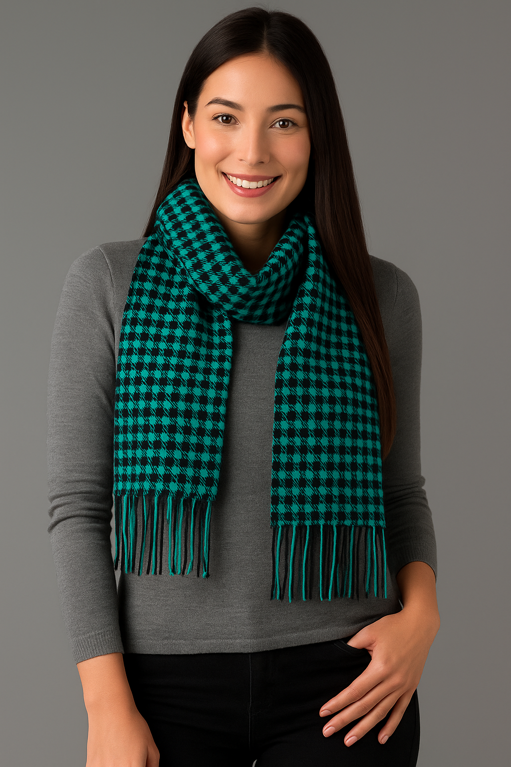 Bufanda tejida en baby alpaca, su colorida composición te traerá alegría en los días más fríos del invierno.